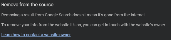 It's also free to have Google remove your personal information from its search results. Instructions can be found here: https://support.google.com/websearch/answer/12719076?hl=en. But this can be a manual and time-consuming process, and keep in mind Google is only one search engine. It's best to remove your data from the source that's exposing them to many different distribution points.
